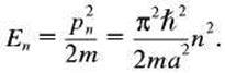 Тут n - номер квантового стану. Визначивши звідси дозволені значення імпульсу, знайдемо і рівні енергії в ямі: