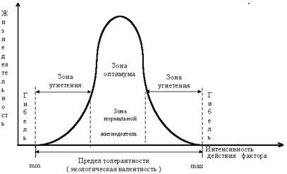 Рис. Зависимость результата действия экологического фактора от его интенсивности