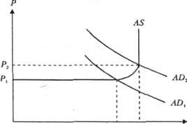 Если экономика находится на промежуточном или классическом отрезке кривой совокупного предложения AS,