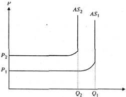 На рис.2. видно, что стоимостное увеличение совокупных издержек производства ведет к сдвигу кривой AS2