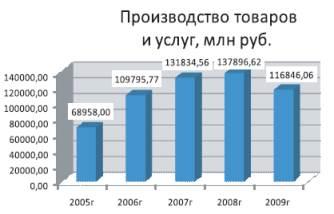 Объем отгруженных товаров, выполненных работ и услуг за 2008 год составил 137896,62 млн рублей. Индекс промышленного производства к уровню 2007 года составил 98,4%.