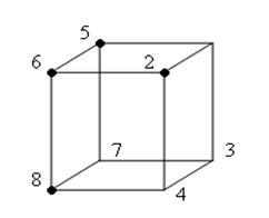Отметим на модели куба элементарные конъюнкции: первой конъюнкции соответствует вершина 6, второй – вершина 5, третьей – вершина 8, четвертой – вершина 2 (рис 8). Таким образом, множество Nf
