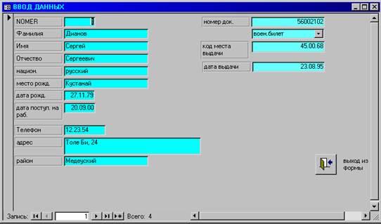 на тему: “КАДРЫ с использованием программы Microsoft Access 97”