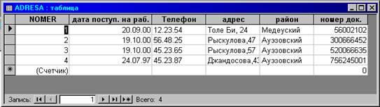 Исходные данные к проекту: 1. Таблица “tblADRESA”.