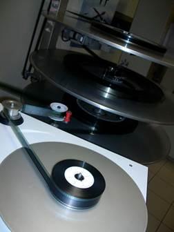 Трехдисковый плэттер выгодно отличается простотой конструкции и легким обслуживанием. На плэттере возможно одновременно с демонстрацией одного производить подготовку второго фильма. Главное особенность этого устройства - возможность нормально продолжить работу, даже если на датчик скорости сматывания, находящийся в центре диска с которого идет демонстрация фильма, намоталось много пленки. В этом случае не произойдет рывка и остановки плэттера. Так же датчик не боится загрязнения, чувствительность его может быть легко отрегулирована.