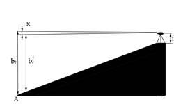 - Визирная ось зрительной трубы должна быть параллельна оси цилиндрического уровня. Поверку выполняют двойным нивелированием по способу вперёд точек А и В, прочно закреплённых металлическими костылями на расстоянии 50-70 м. один от другого. Если визирная ось зрительной трубы не параллельна оси цилиндрического уровня, то в отсчёты по рейке войдёт погрешность Х.
