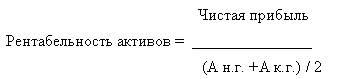 Рассмотрим первую группу анализируемых показателей - рентабельность активов. Рентабельность совокупных активов определяется по формуле: