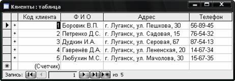 Рисунок …. - Объект базы данных таблица