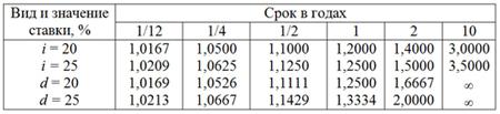 Данные таблиц 1.2, 1.3 наглядно свидетельствуют о чувствительности финансовых и коммерческих операций к фактору времени. Из данных таблиц видно, что влияние этого фактора усиливается при увеличении размера ставки, как для операций наращения, так и для дисконтирования.