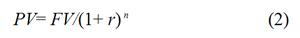 Настоящее (современное) значение стоимости определенной будущей суммы имеет значение (формула 2)[4]: