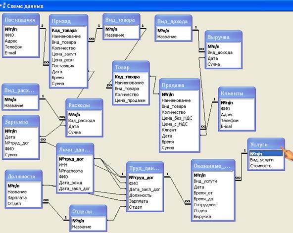 База данных в рамках курсовой работы реализована с использованием СУБД Microsoft Access XP, а программный интерфейс пользователя реализован в среде визуального программирования Borland Delphi 7. Доступ к таблицам базы данных реализуется с использованием технологии ADO.