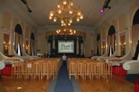 В конструкции зала использованы подвесные потолки, паркетный пол, европейские окна. Микроклимат поддерживается кондиционированием воздуха.
