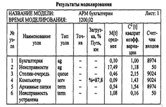минус в несколько раз»). Обе отмеченные причины приводят к тому, что от построения математической модели приходится отказаться. Поэтому применялся метод имитационного моделирования. Рассмотренная выше модель относится к разновидности имитационных моделей, которые называются разомкнутыми. В таких моделях не просматриваются какие-либо обратные связи или взаимные влияния компонентов экономической системы. В результате рассмотрения модели АРМ бухгалтерии можно сделать вывод , что имитационная модель достаточно эффективно отражает функционирование компьютеров в автоматизированной бухгалтерии и позволяет оптимизировать процесс обработки документов и неисправностей.