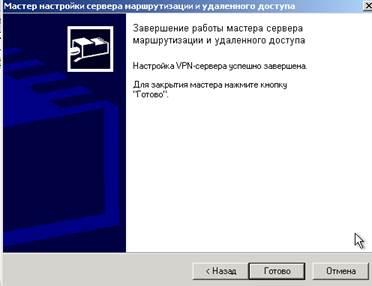 11. В диалоговом окне завершения работы мастера установки сервера маршрутизации и удаленного доступа (Routing and Remote Access Server Setup Wizard) нажал кнопку Готово (Finish)