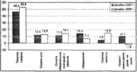 В декабре 2008 г. денежные расходы населения сложились в сумме 2951,0 млрд. руб. и увеличились по сравнению с аналогичным периодом 2007 г. на 18,8%. Относительно предшествующего ноября рост составил 25,4 млрд. руб.