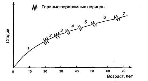 5-переоценка ценностей; 6-мастерство; 7-пенсионный период