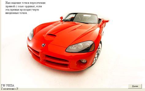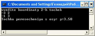 Даний курсовий проект полягав у розробці дидактичного ілюстративного матеріалу в Delphi для визначення точки перетину прямої з віссю координат, якщо ця пряма проходить через введені точки.