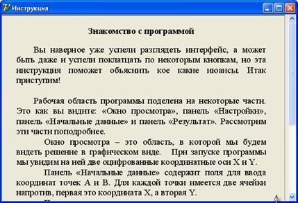 Меню «Инструкция» здійснює виклик довідки по користуванню додатком (Рисунок 10).