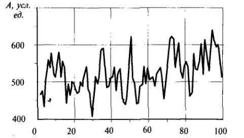 Рассмотрим в качестве примера (2.4) временной ряд - ряд последовательных значений курса ценной бумаги А, наблюдаемых в моменты времени 1,…,100. Результаты наблюдений графически изображены на рисунке 2.4.
