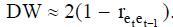 Между критерием Дарбина–Уотсона и коэффициентом автокорреляции остатков первого порядка имеет место следующее соотношение: