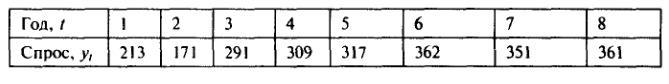 Пример 2.3.2. В таблице 2.3.2. приведены данные, отражающие спрос на некоторый товар за восьмилетний период, т.е. временной ряд спроса
