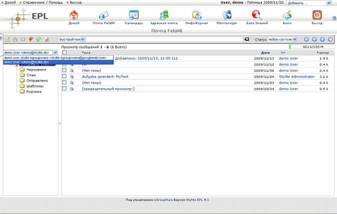 eGroupWare позволяет провести опрос сотрудников, организоватьобщение по электронной почте e-mail (IMAP) клиент, а так же с помощью встроенного сайт-менеджера организовать внутренний корпоративный сайт.