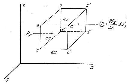 В покоящейся жидкости выделяется какой-либо объем. В данном примере на рис. 2.2 рассматривается параллелепипед с гранями ab