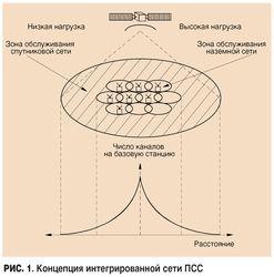 Концепция развития систем спутникового радио, согласно документам МСЭ, аналогична применяемой к ПСС, то есть базируется на использовании одной и той же полосы частот как спутниковыми, так и наземными системами звукового вещания [7]. Данный подход потенциально может обеспечить улучшенную гибкость обслуживания благодаря использованию общего приемника, позволяя этим двум службам тесно координировать свое развитие, вместо того чтобы пытаться обеспечить совместное использование частот полностью независимыми службами. Все каналы, выделенные РСС для некоторой зоны обслуживания, могут использоваться для наземного радиовещания. Создание интегральной сети позволяет обеспечить экономически эффективное решение для полного и быстрого покрытия национальных территорий и массового производства простых приемников, работающих как со спутниковой, так и с наземной сетью.