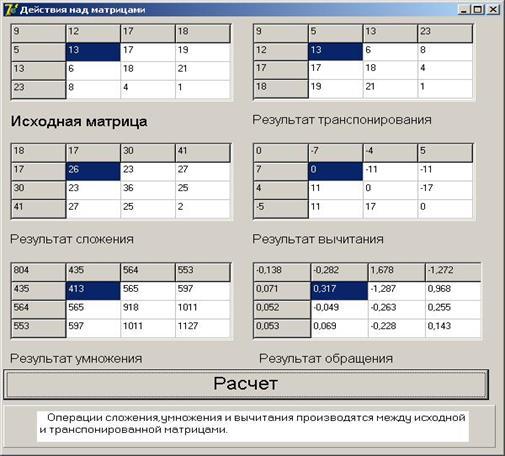 Рисунок 2.- «Окно вывода результатов действий над матрицами»