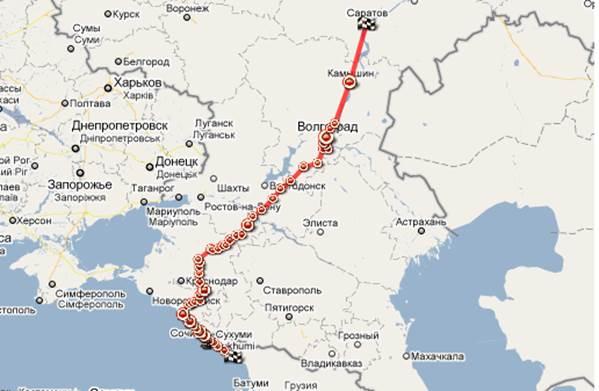 3.1.Маршрут поставки на автотранспорте из Абхазии в Саратов. 3