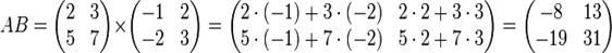 Рассмотрим правило умножения двух квадратных матриц второго порядка.