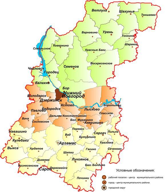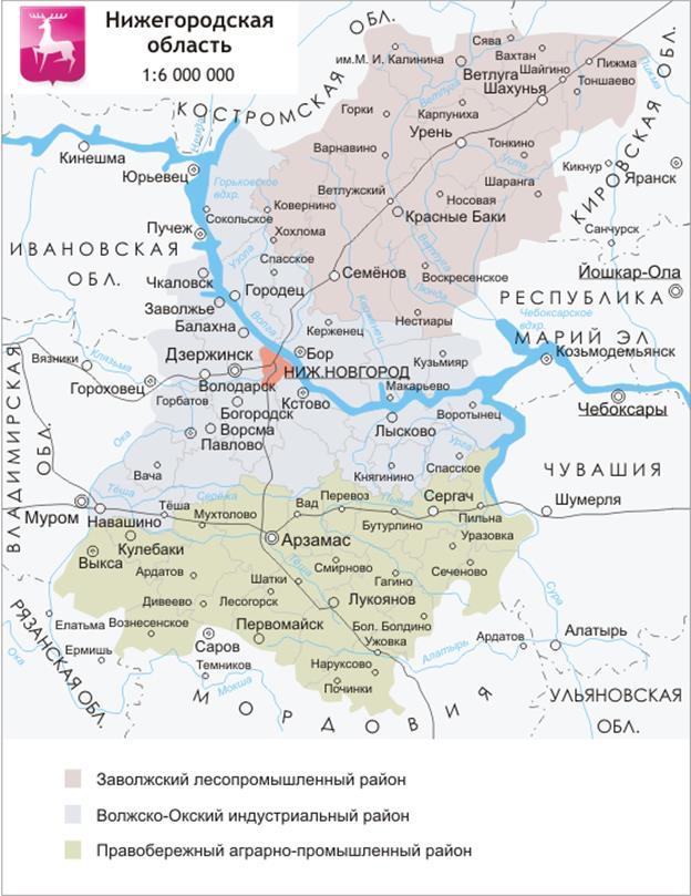 На территории Центральной зоны Нижегородской области, которая является промышленно-урбанистской, сосредоточено 87% товарного выпуска промышленной продукции области и более 80% химических нагрузок на воздушный бассейн и водные ресурсы. При этом химическая опасность нагрузок существенно выше, чем в среднем по области, то есть по сравнению с другими зонами.