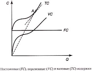 (так как постоянные издержки остаются неизменными, то изменение валовых издержек будет происходить за счет изменения переменных издержек). На кривой валовых издержек предельные издержки в какой-либо точке (например, точке A
