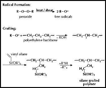 Силановое сшивание (СС) расширяет рамки производственного процесса, поскольку отпадает необходимость поддерживать температуру ниже температуры разложения перекиси. При использовании силана экструдат может быть быстро охлажден и подготовлен для чистовой обработки. Скорость полимеризации определяется скоростью диффузии влаги, поэтому для ускорения реакции часто применяется горячая водяная баня, паровая сауна или автоклав низкого давления.