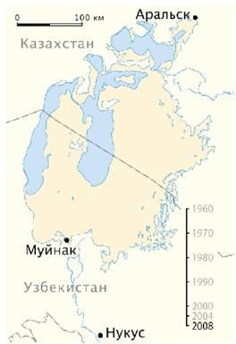 Сегодня Арал и окружающие его территории стали всемирно известными вследствие антропогенной экологической катастрофы. С ростом водопотребления, связанного с освоением новых орошаемых площадей, занятых в основном хлопчатником и рисом; увеличением населения, преимущественно занятого сельскохозяйственным производством, приток воды в море из двух основных речных систем бассейна - Амударьи и Сырдарьи - почти полностью прекратился.