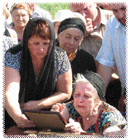Панихида окончена. К могиле кладутся цветы. Среди них - хризантемы - цветы скорби и печали.