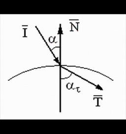 Рис. 2.2 Вектор преломленного луча вычисляется по формулам /8/: