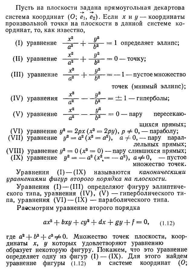 1.7. Упрощение уравнений фигур второго порядка на плоскости и в пространстве……………………………………………………..15