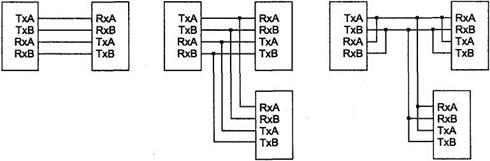 С появлением шин USB и Fire Wire в качестве характеристики интерфейса стала фигурировать и топология соединения. Для интерфейсов RS-232C и Centronics практически всегда применялась двухточечная топология PC — устройство (или PC — PC). Исключениями из этого правила являются различные устройства безопасности и защиты данных (Security devices), которые подключаются к СОМ- или LPT-портам, но имеют разъем для подключения внешнего устройства. Однако эти устройства для традиционной периферии прозрачны, поэтому можно считать, что они не нарушают общего правила. Аналогично обстоит дело и с адаптерами локальных сетей (например, Paraport) и внешних дисковых накопителей (Iomega Zip), подключаемых к LPT-портам. Хотя разрабатываемые стандарты для параллельного порта (IEEE 1284.3) и предусматривают соединение устройств в цепочку (Daisy Chain) или через мультиплексоры, широкого распространения такие способы подключения пока не получили. К другому классу исключений относится построение моноканала на СОМ-портах, которое несколько лет назад применялись в "любительских" локальных сетях, но было вытеснено существенно более эффективной и подешевевшей технологией Ethernet. Интерфейсные шины USB и Fire Wire реализуют древовидную топологию, в которой внешние устройства могут быть как оконечными, так и промежуточными (разветвителями). Эта топология позволяет подключать множество устройств к одному порту USB или Fire Wire.