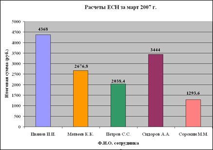 5. Результаты расчета ЕСН по каждому сотруднику за текущий месяц представить в графическом виде.