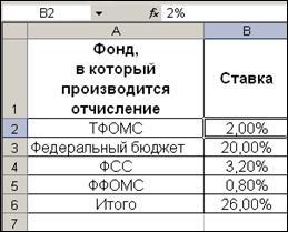 MSExcel создать таблицу ставок ЕСН по исходным данным (рис. 1).