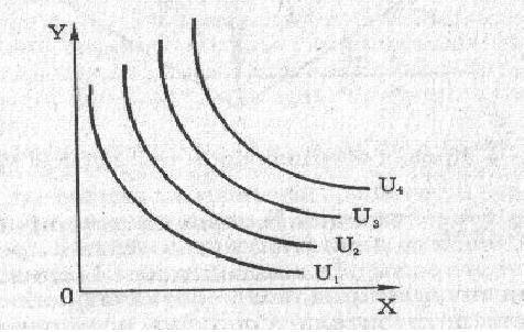 Предпочтения потребителя позволяют ему выбирать между различными наборами благ. Например, сок и пицца. Если нам предложат два варианта наборов, мы выберем тот, который наилучшим образом соответствует нашим вкусам. Если же одинаково приемлемы оба варианта. Это будет означать, что мы безразличны к их выбору. Наши предпочтения могут быть представлены графически с помощью кривых безразличия. Кривые безразличия отражают различные наборы товаров, которые в одинаковой степени удовлетворяют потребителя. Допустим, что благо Х является соком, а благо У — пиццей. Допустим, что потребителю всё равно, съесть ли 3 пиццы, запив их одной бутылкой сока, или съесть одну пиццу, запив тремя бутылками сока (прилож.Г). Кривая безразличия представляет все множество комбинаций сока и пиццы, имеющих одинаковую, с точки зрения потребителя, полезность. Чем правее и выше расположена кривая безразличия, тем большее удовлетворение приносят представленные ею комбинации двух благ. Взяв другие возможные варианты сочетания продуктов, мы можем составить карту кривых безразличия (прилож Г), которая представляет собой семейство кривых безразличия при различных количествах предлагаемых товаров. Кривые безразличия имеют отрицательный наклон, выпуклы относительно начала координат и никогда не пересекаются друг с другом. Поэтому через любую точку можно провести лишь одну кривую безразличия. Аппарат кривых безразличия имеет важное значение в теории поведения потребителя.