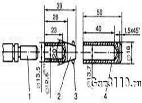 Рис. 9 Приспособление для одевания пружинного кольца: 1 — вал якоря; 2 — втулка направляющая, 3 — кольцо пружинное; 4 — толкатель
