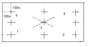 Анологичные наблюдения выполняют из опорного пункта 2 (Примечание: нумерацию опорных пунктов на рис. 1 следует выполнять против часовой стрелки).