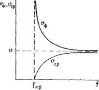 Подобная зависимость характерна, например, для нашей направляющей системы. В самом деле, фазовая скорость волны ТЕ или TM, распространяющейся между проводящими плоскостями, равна