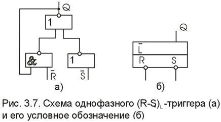 Реализация триггера непосредственно по уравнению (8) в базисе ОФНП приводит к однофазному триггеру типа. Однако в таком виде триггер не находит применения. Наиболее часто триггеры выполняются в базисе элементов И-НЕ и И-ИЛИ-НЕ.