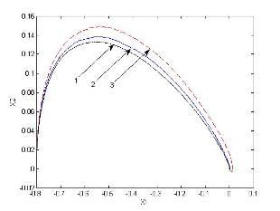 Так как динамическая модель нашей нелинейной системы представляет собой систему дифференциальных уравнений третьего порядка, то её полное исследование в многомерном фазовом пространстве связано с большими трудностями. Однако при решении многих прикладных эти трудности могут быть преодолены путем применения редуцирования движений на фазовую плоскость. Суть редуцирования многомерного фазового пространства состоит в том, что после специального преобразования исходных уравнений можно исследовать движения в плоскости только двух переменных, если действие остальных переменных состояния системы учесть в уравнениях линий переключения. Такой подход позволяет не только представить графически характер поведения системы, но и использовать различные методы, которые достаточно глубоко и полно разработаны для систем второго порядка.
