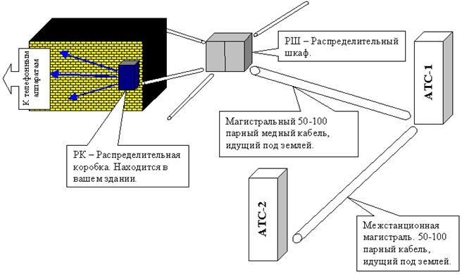 Это уже устаревшие типы АТС, но, тем не менее, еще используются на территории России ввиду дороговизны новых и тяжелым экономическим положением в стране. И конечно нельзя не упомянуть что кабельное хозяйство российских операторов связи на 40% 60-х годов. Именно на этих станциях обычно не используется никакого оборудования уплотнения, и качество связи зависит только от оборудования механической коммутации. Общая структура взаимодействия АТС и абонентов показана на рисунке: