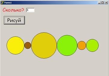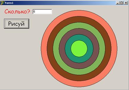 Здесь r– радиус круга, который затем уменьшаем r:=r-25;