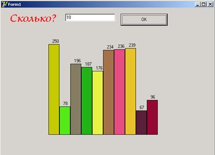 Дополнительно: над каждым столбиком вывести его размер (высоту):